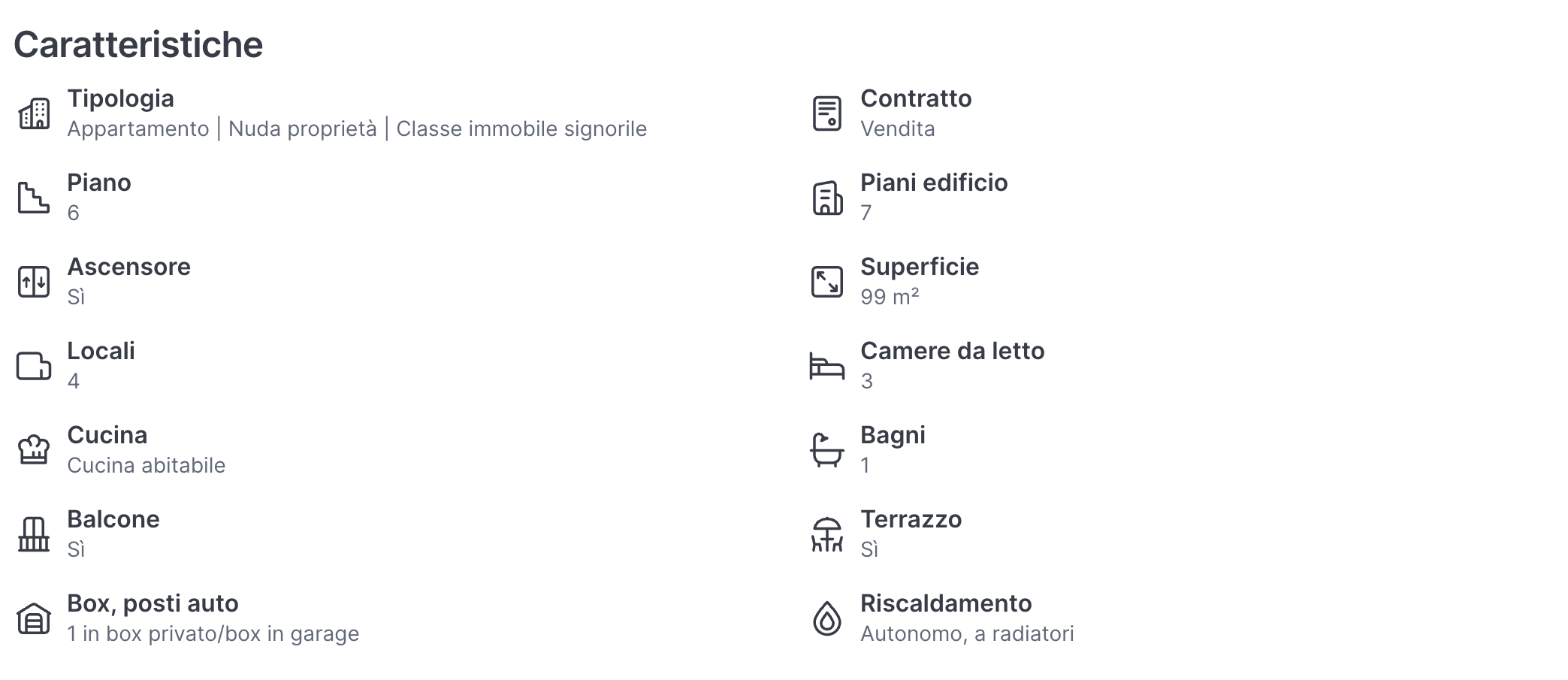 Quartiere Crocetta – In Corso Mediterraneo angolo Corso Rosselli proponiamo in vendita la nuda proprietà di un suggestivo appartamento con incantevoli terrazzi panoramici. La proprietaria è sessantenne. L’immobile è ubicato al quinto ed ultimo piano di uno stabile signorile di recente costruzione. E’ composto da un ingresso su disimpegno, cucina con balcone, saloncino con affaccio su grande terrazzo comunicante con una camera da letto, studio e servizio. Un’elegante scala a chiocciola permette di raggiungere il livello superiore dove domina un terrazzo di ampia metratura. Al piano meno uno troviamo un box e al piano meno due la cantina. Riscaldamento autonomo, videocitofono, porta blindata, domotica. L’edificio è circondato da altri lotti terrazzati arricchiti da vegetazione immersi in un comprensorio di viali alberati